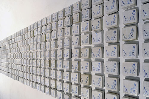 Calcagno made her debut in 2012 at the Studio Lucio Fontana in Albissola, exhibiting Nerosensibile: on that occasion, the Hilaria series presented some of the powerful themes that would hallmark all her works. These include obsessive repetition, the mortal permanence of the photographic image and its intrinsic temporal precision, its limitations in depicting bodily nature, and, in addition, the use of sequential works to suggest a different, internal but perfectly cadenced dimension of time, a sort of hypothetical narrative, elliptical and interrogative, in which an important role is played by the time required for its viewing, a factor that is taken to its extremes in her installations.